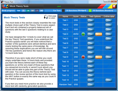 • 14 properly balanced pre-set simulated Theory Tests based on our extensive experience (as one of the largest national driving schools in the UK) of the most commonly occurring test questions all under realistic exam conditions.